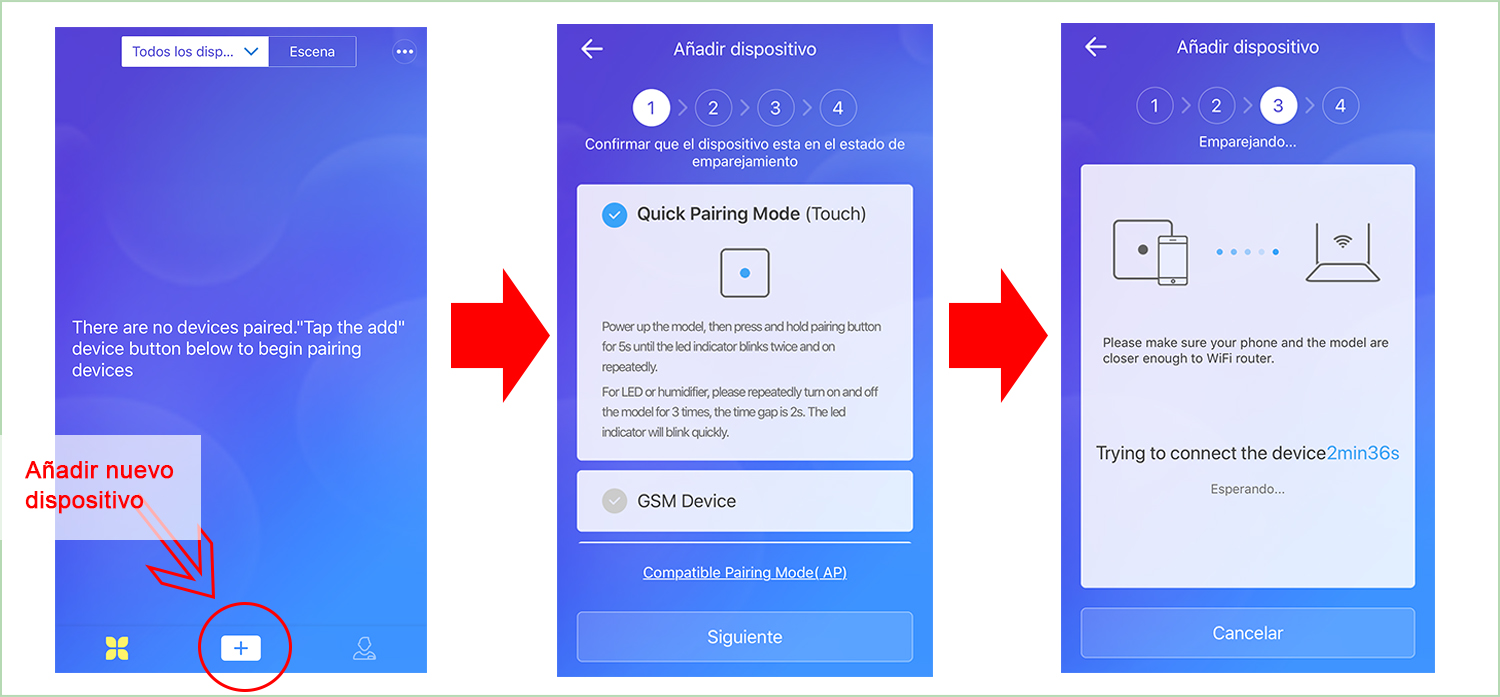 Para añadir el dispositivo, tocamos el botón “+” en la parte inferior de la aplicación.